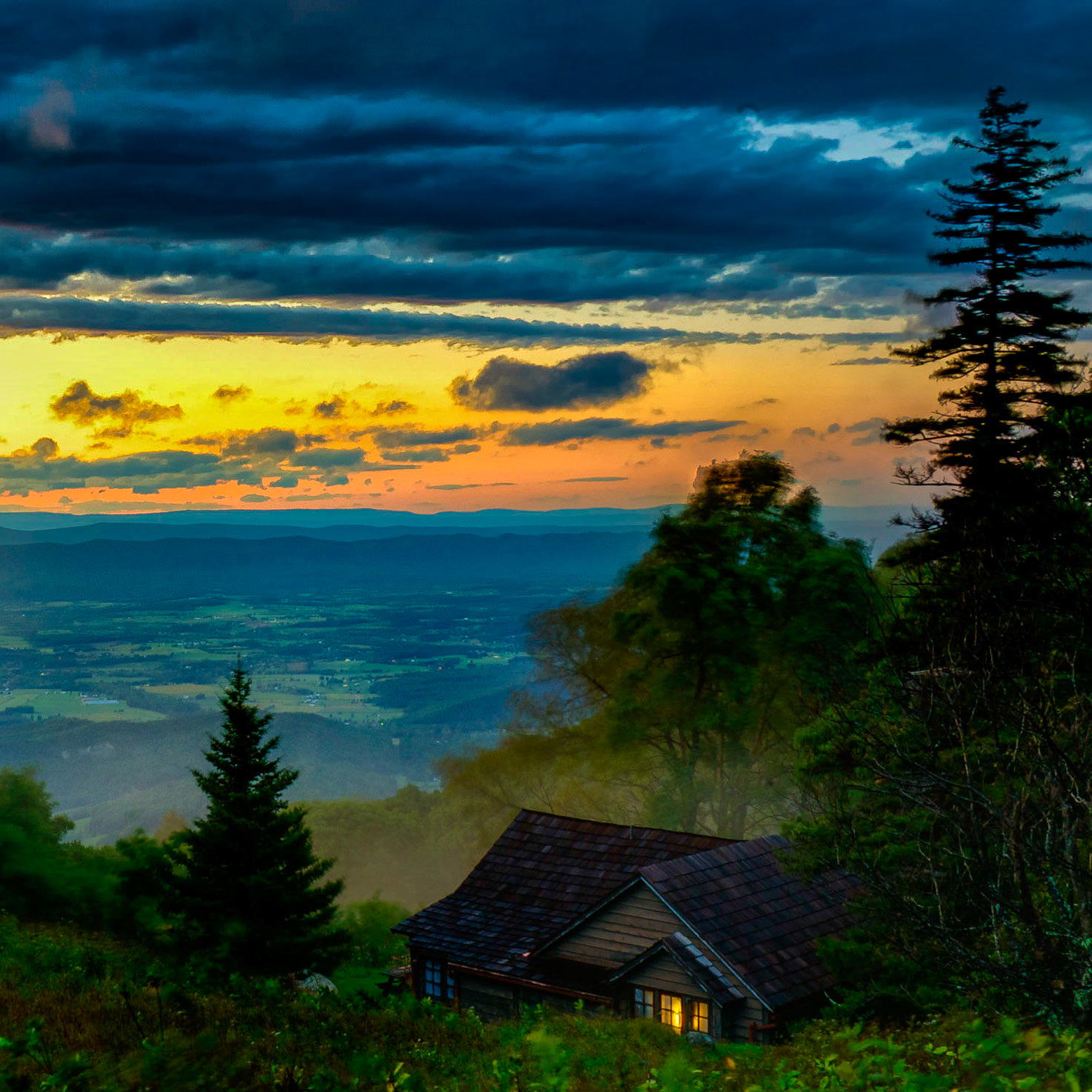 A warm glow from a home in Shenandoah Nationall Park after a cold storm blew through.