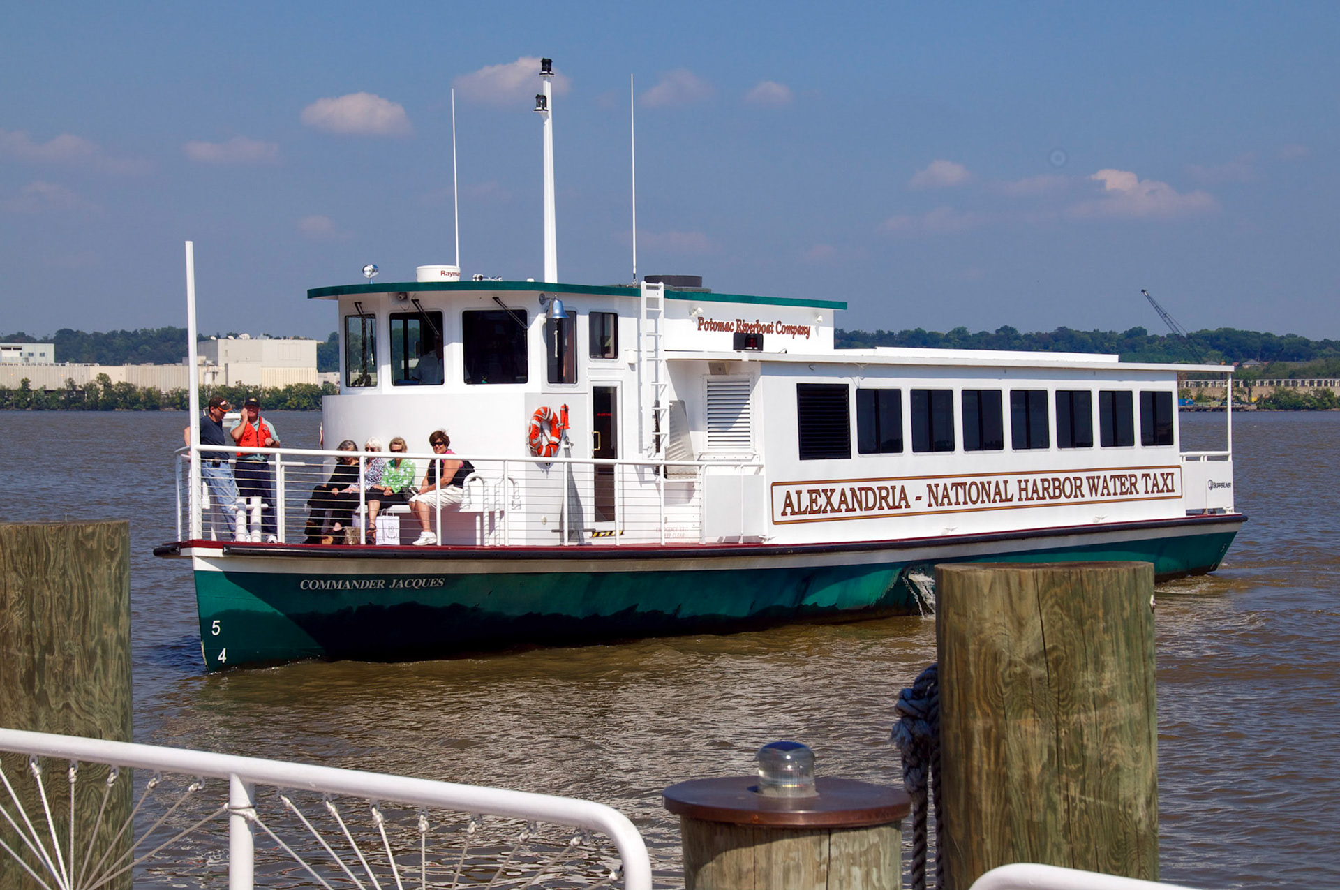 Paula on water taxi below Woodrow Wilson Bridge, Washington, DC